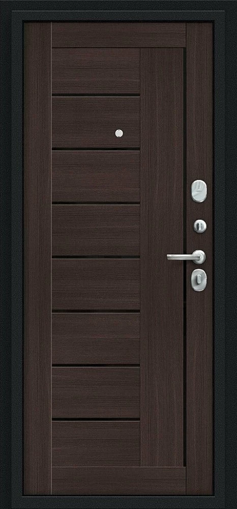 Надежная входная Дверь Браво Проф Букле черное/Wenge Veralinga премиум класса по цене 33 039 руб. Большая толщина стали защитит от проникновения в ваш дом, квартиру или коттедж. Используется очень качественная фурнитура: замки, цилиндры, ручки, защелки. Покрытие и отделка двери изготовлено под внимательным контролем производителя. Дверь имеет долгий срок службы и гарантию.