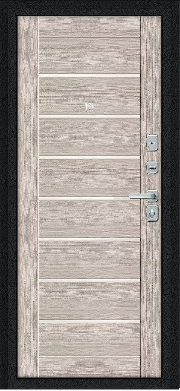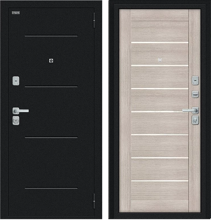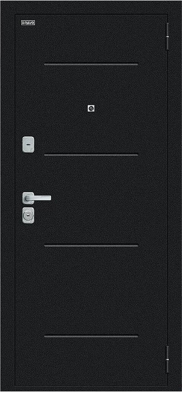 Надежная входная Дверь Браво Техно/BChrome Букле черное/Cappuccino Melinga премиум класса по цене 33 039 руб. Большая толщина стали защитит от проникновения в ваш дом, квартиру или коттедж. Используется очень качественная фурнитура: замки, цилиндры, ручки, защелки. Покрытие и отделка двери изготовлено под внимательным контролем производителя. Дверь имеет долгий срок службы и гарантию.