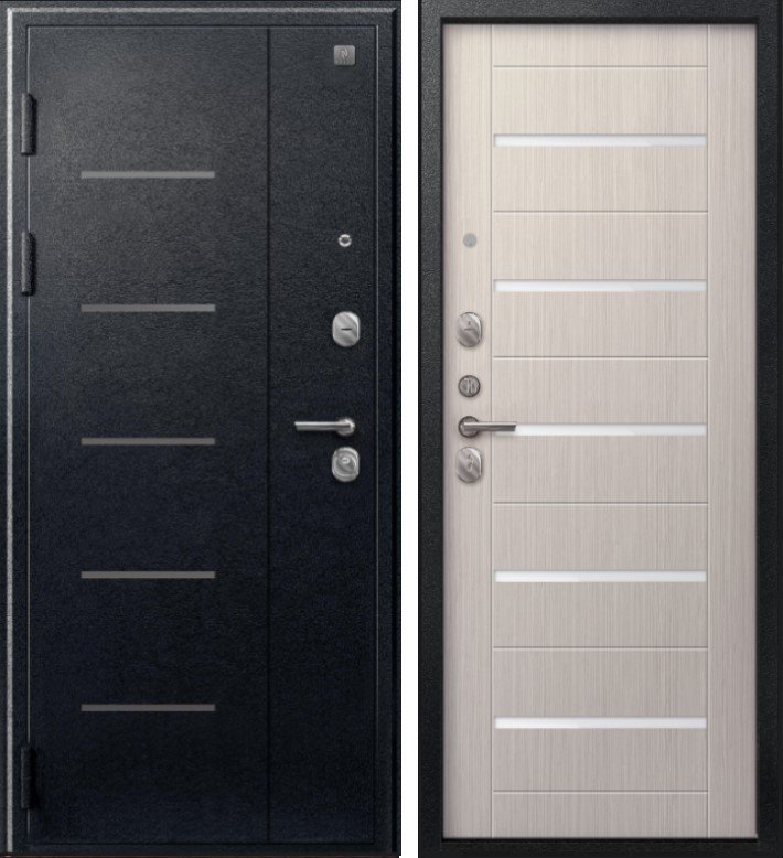 Надежная входная Дверь V-05 Черный муар - Лиственница светлая премиум класса по цене 41 939 руб. Большая толщина стали защитит от проникновения в ваш дом, квартиру или коттедж. Используется очень качественная фурнитура: замки, цилиндры, ручки, защелки. Покрытие и отделка двери изготовлено под внимательным контролем производителя. Дверь имеет долгий срок службы и гарантию.